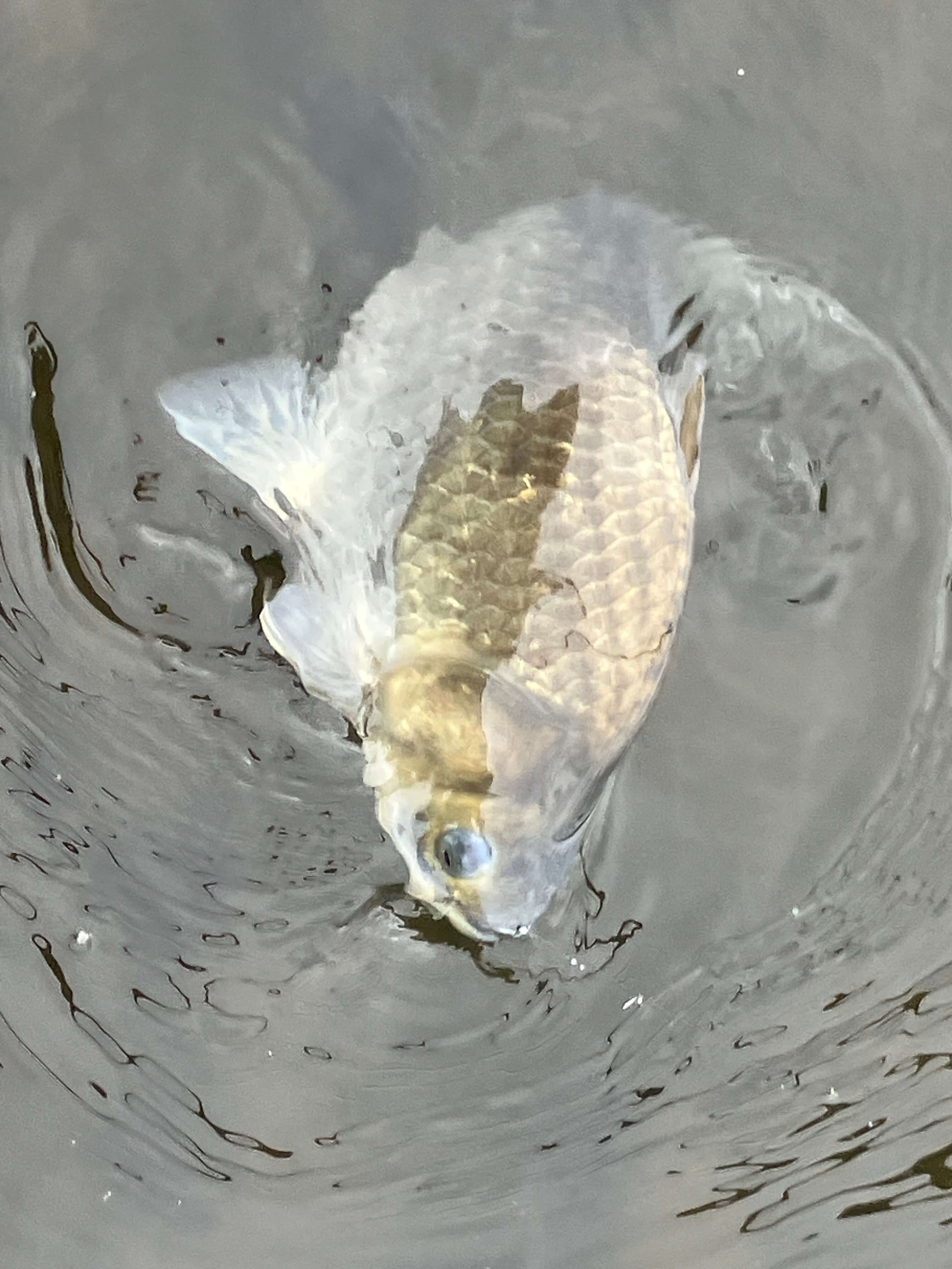 西寄りの風が吹いていたが釣りには影響無さそうなのでトイレ前付近に入釣した。早上がりした常連さんに状況を聞くと風が吹くなか何とか2枚拾ったと言う。