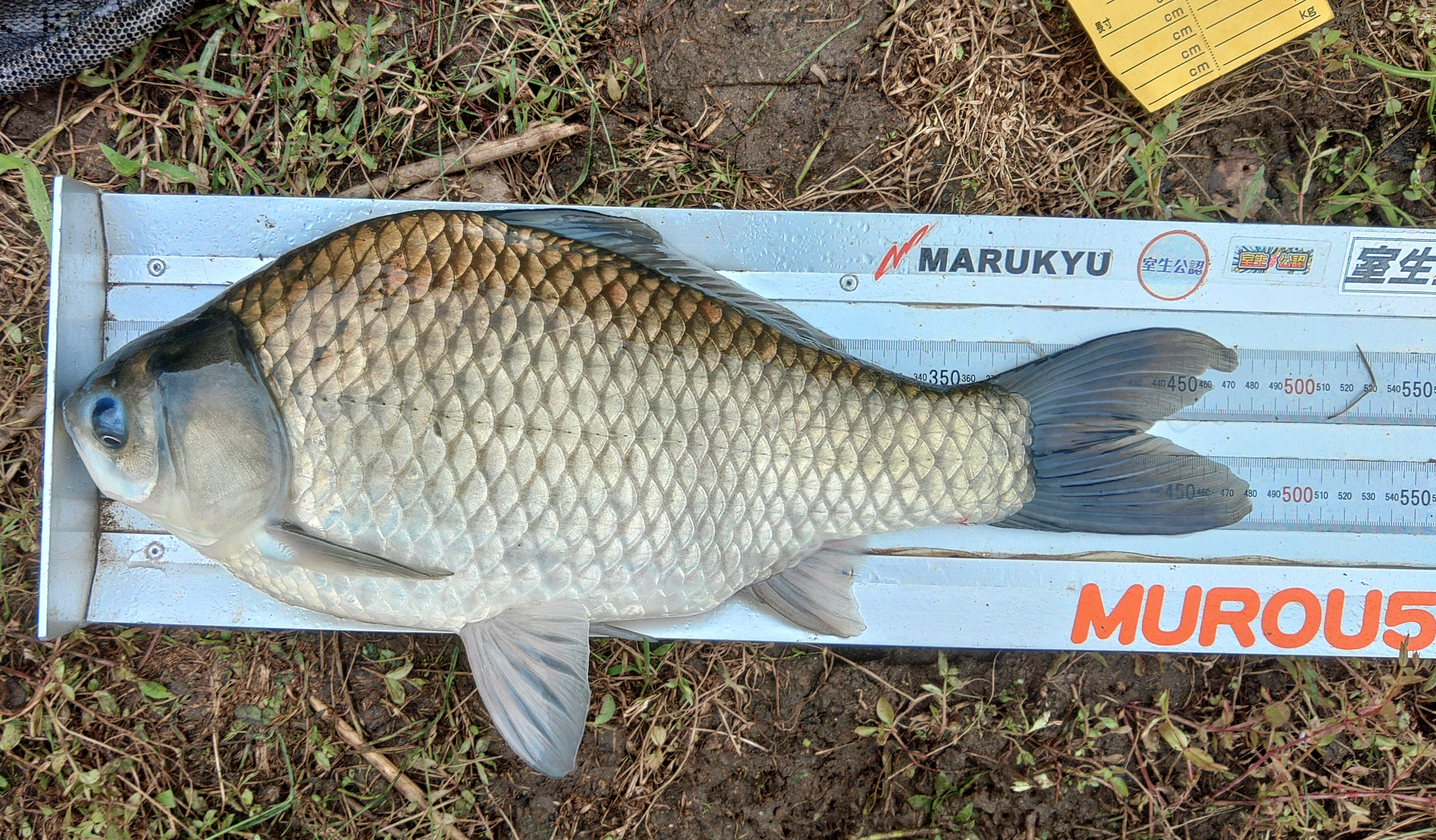 7時半に44.5cmが来て9時に43.5cmが釣れ、とりあえず2枚長寸リミット達成。その後も同サイズ追加しながら、10時頃48.1cmが来て、昼過ぎに47.3cmとサイズアップに成功!