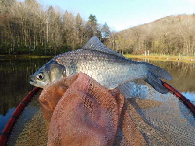 放射冷却現象で急激に冷え込んだためにへら鮒が食い渋っているうえ、風流れが付いていることから、バラケとクワセをシンクロさせることが難しく、アタリを出すことが困難だった。