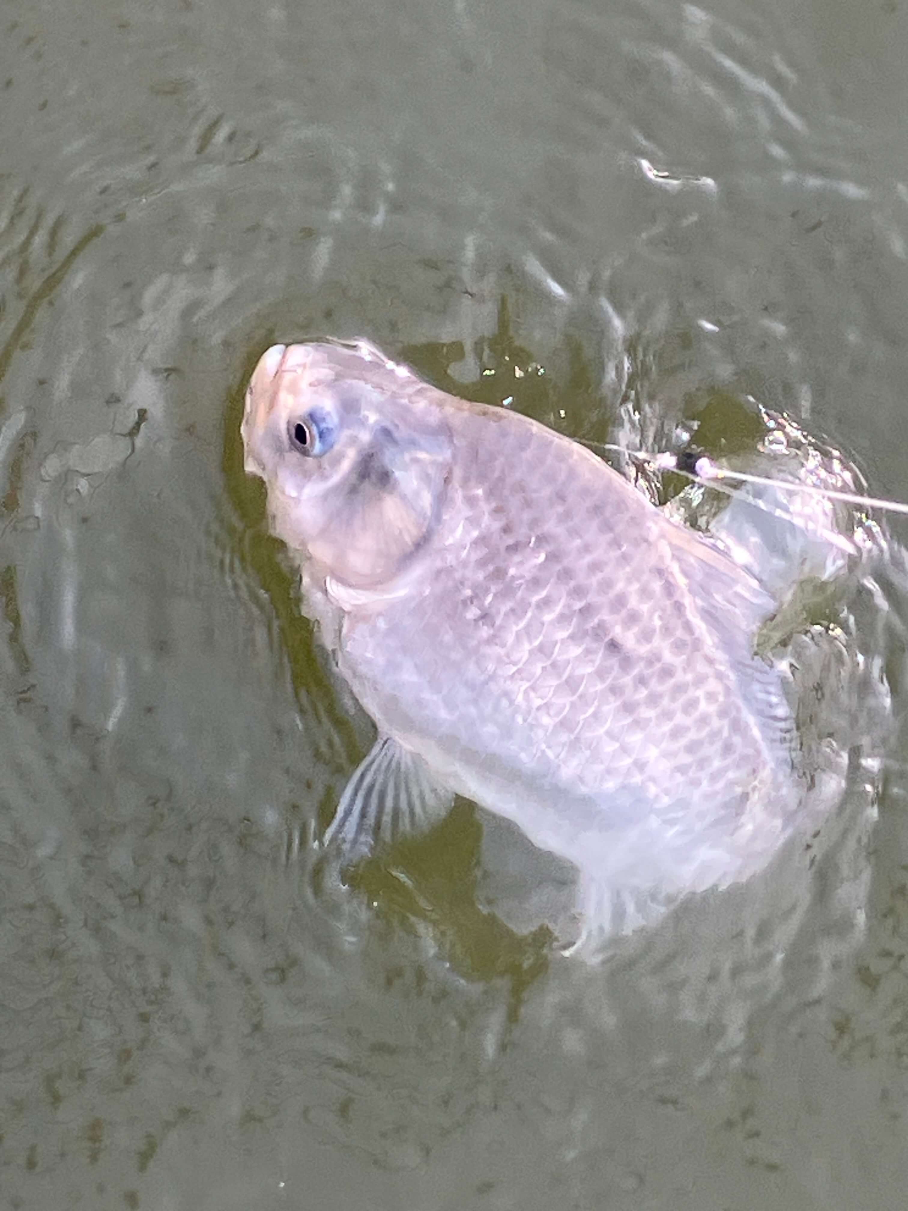 竿 10.5尺(シマノ) 道糸 0.8号(オーナー白の道糸) ハリス上 0.5号 - 8cm(サバキ) ハリス下 0.4号 - 40→50cm(サバキ) ハリ 上 6号(セッサ) ハリ 下 3→2号(リグル) ウキ 大祐 べーシック1番(ボディ4cmパイプトップ足長)