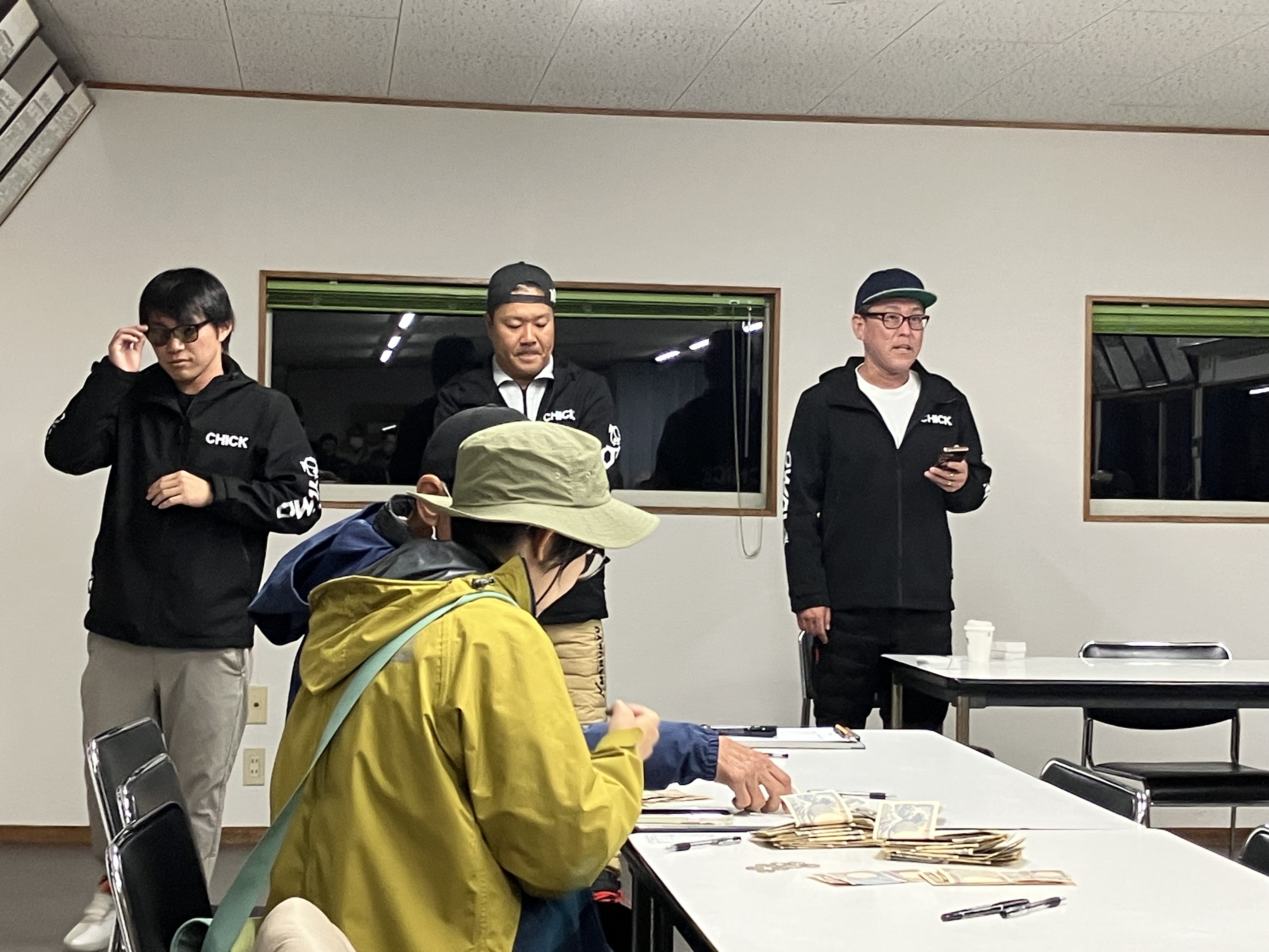 午前中は5枚検量、午後は総重量で例会が行われた。