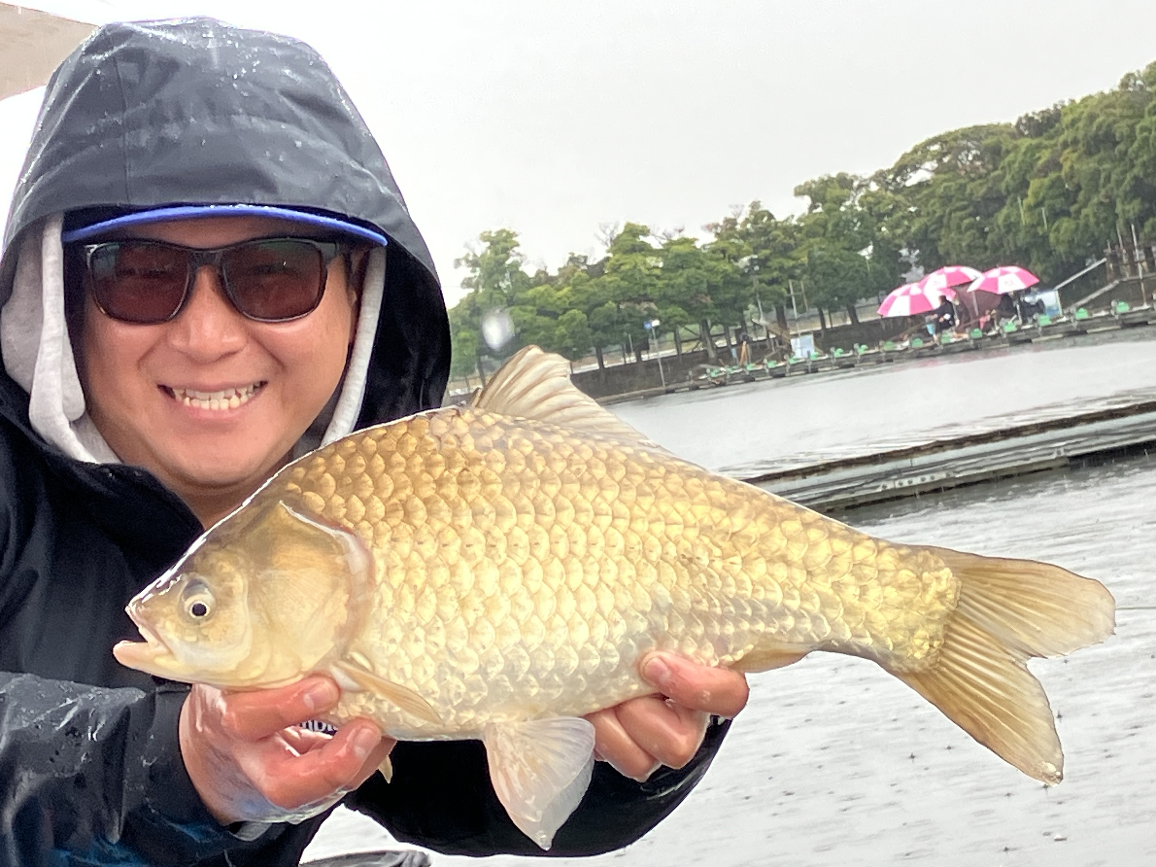 左隣りに入った甥っ子が、16尺の段差の底釣りで1.8kgオーバーの巨べらを釣り上げ大型賞をゲットした。