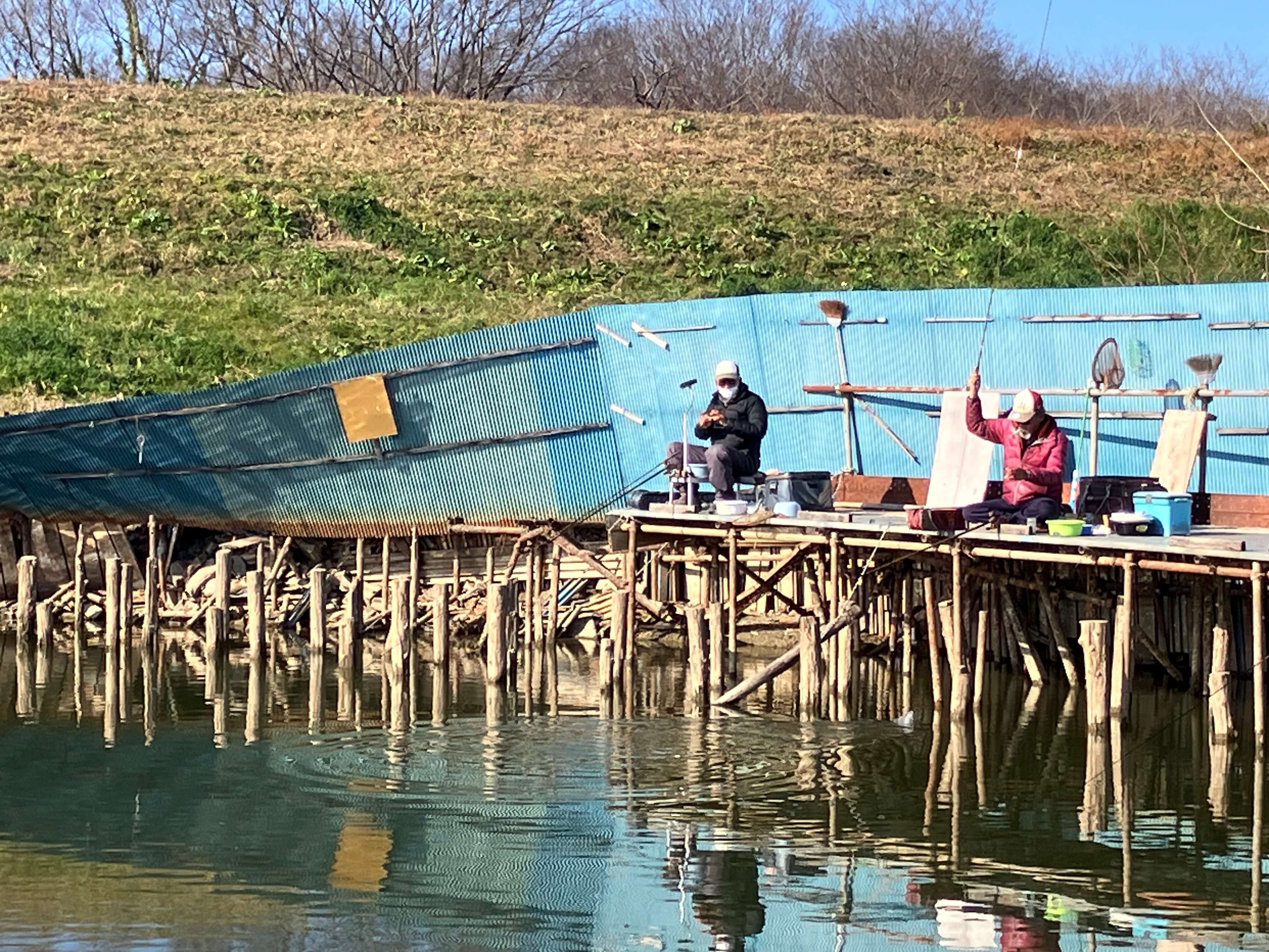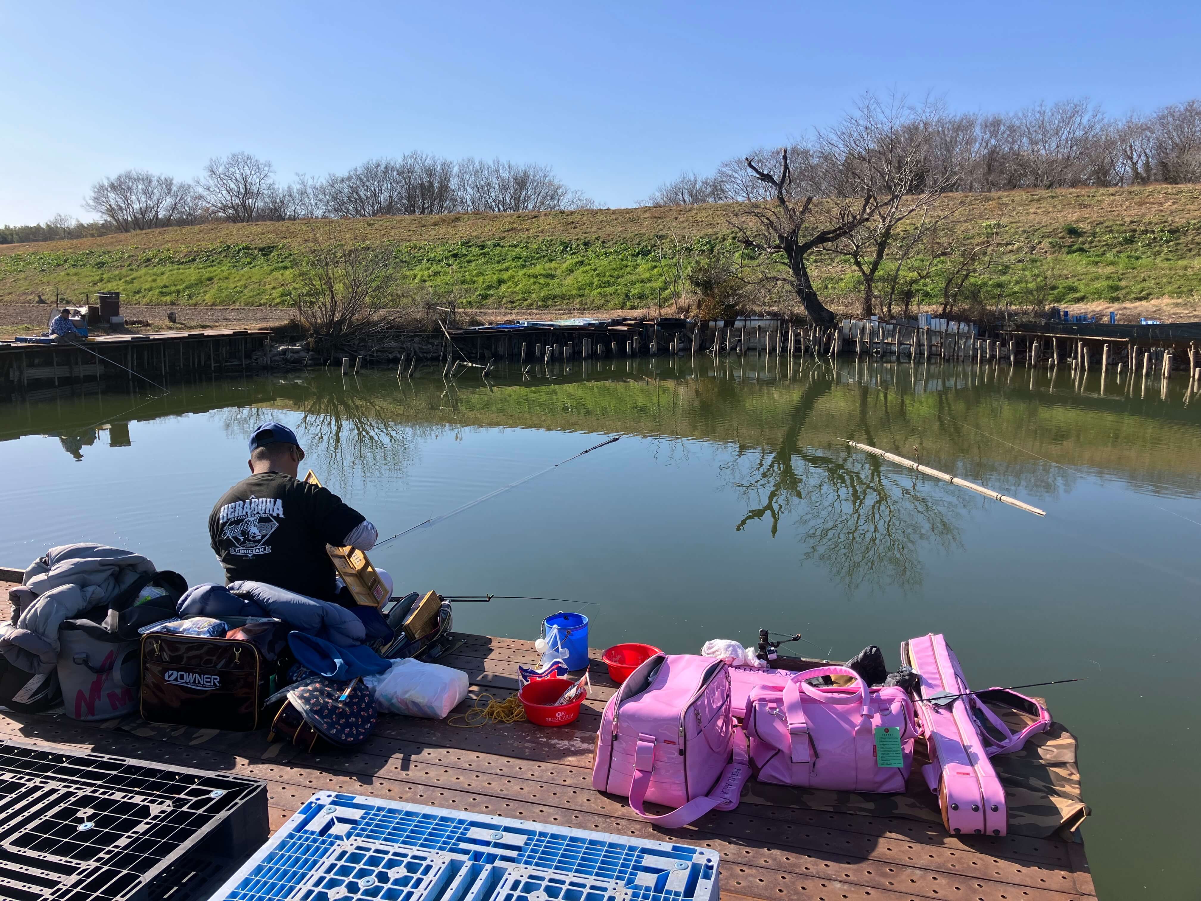7時頃に現地に着くと魚の気配がなく釣り人も居ない。不安な気持ちで支度をしていると常連さんが到着し、昨日は北桟橋で新べらが釣れていたと聞き安心する。