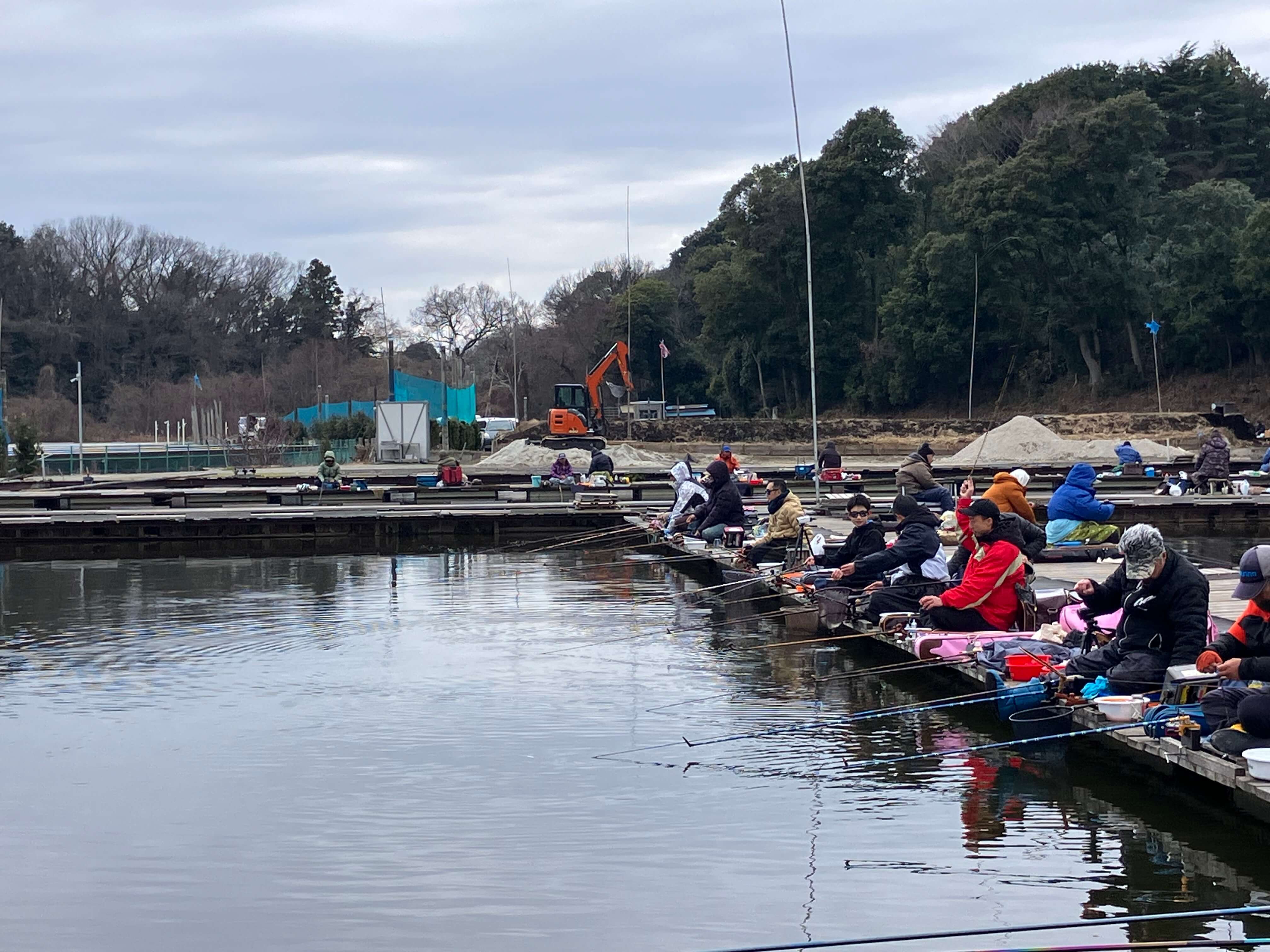1号桟橋の南向に並んだ。朝の冷え込みが強烈でウキが動くまでに時間が掛かるだろうと予想したが、エサ打ちから30分程でウキが動き出し、ポツリポツリと竿が立った。