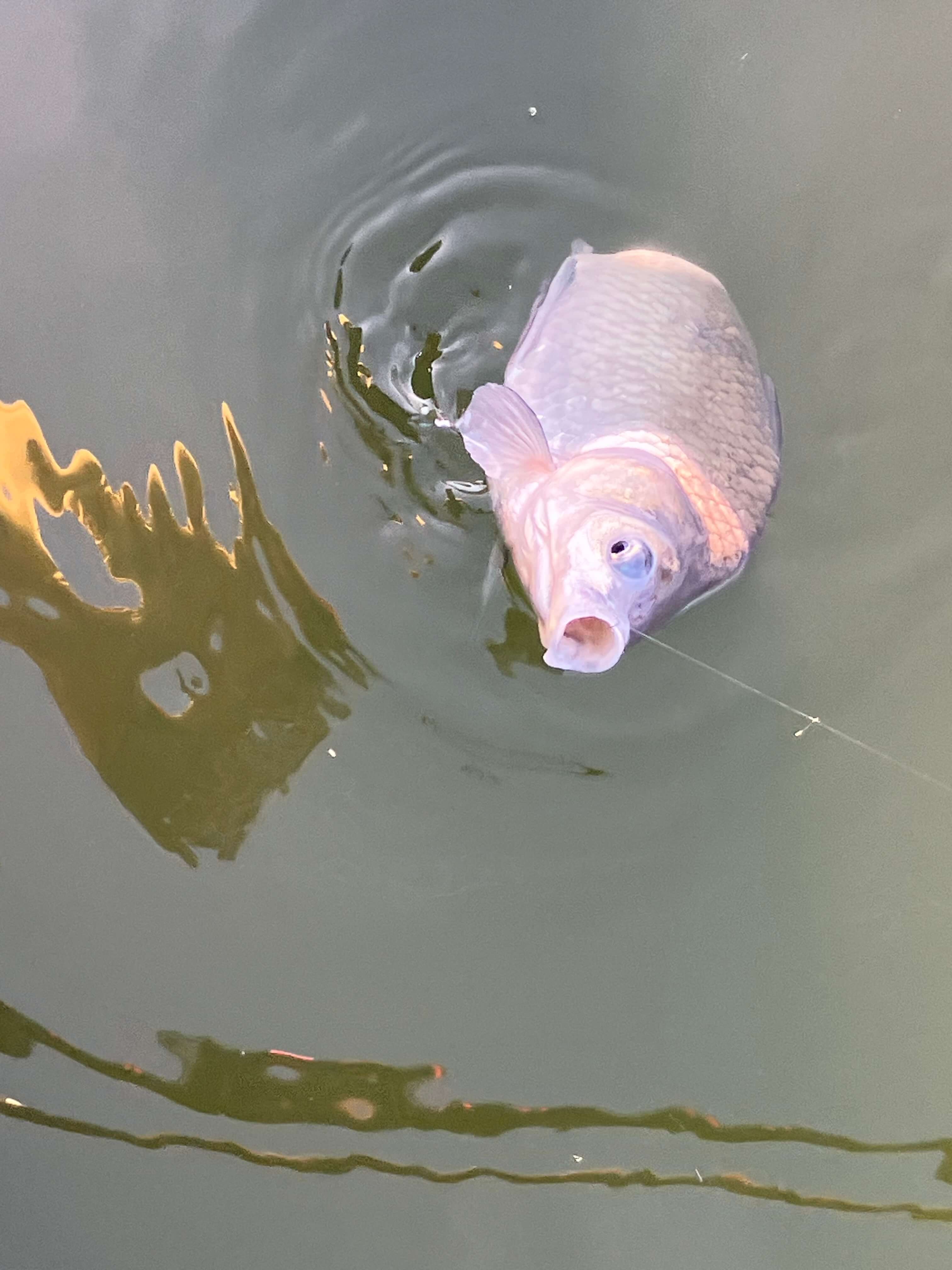 その後、アタリが続かず忘れた頃に竿が立つペースで、昼までに8枚をカウント。午後から風が強まりウキが流れ出すとアタリが止まってしまった。