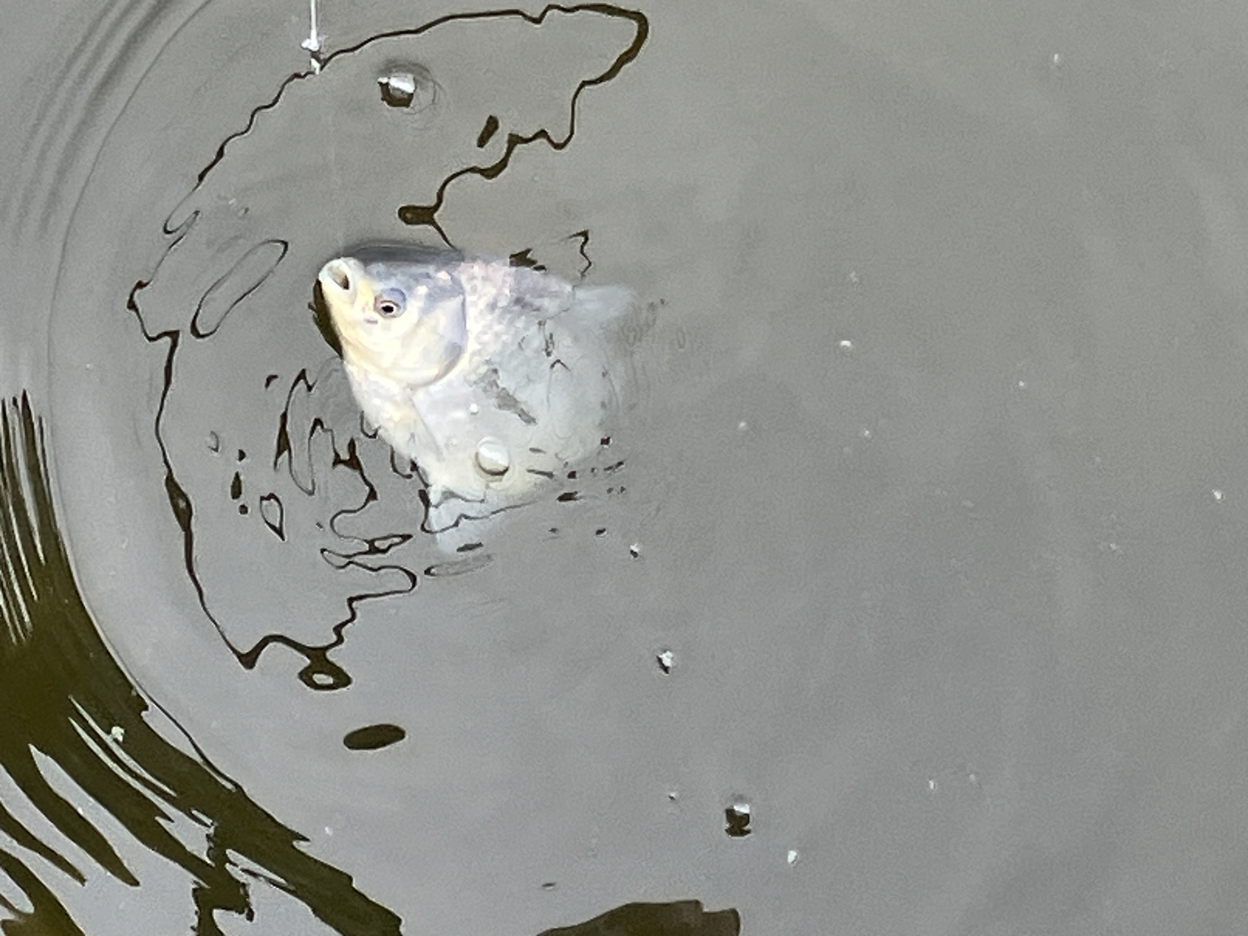 雨が降らない為、かなり減水していた。その影響なのかなかなかウキが動かず、1枚を釣り上げると次の1枚が釣れるまでに時間が空き、アタリを出すのに苦労した。