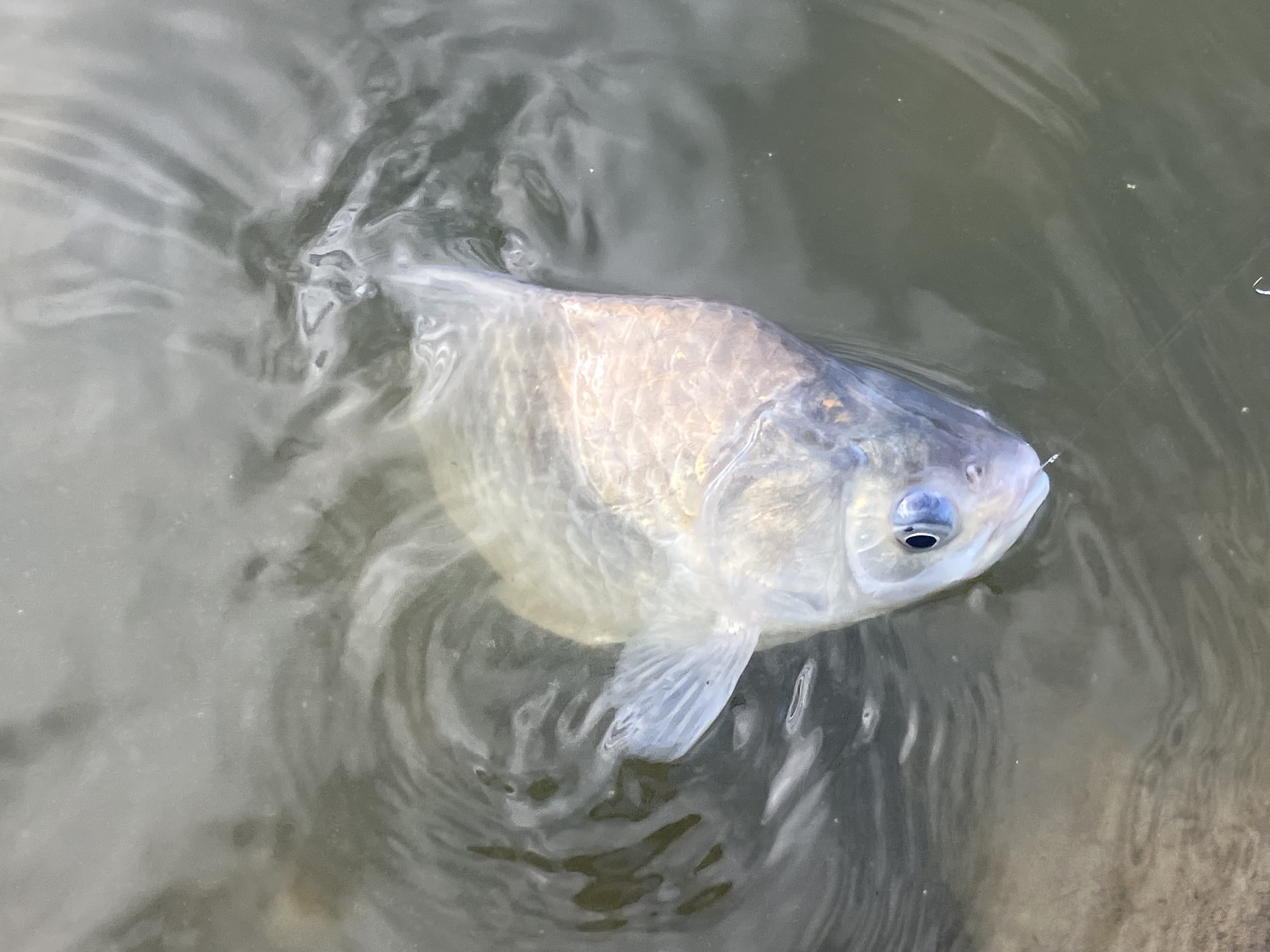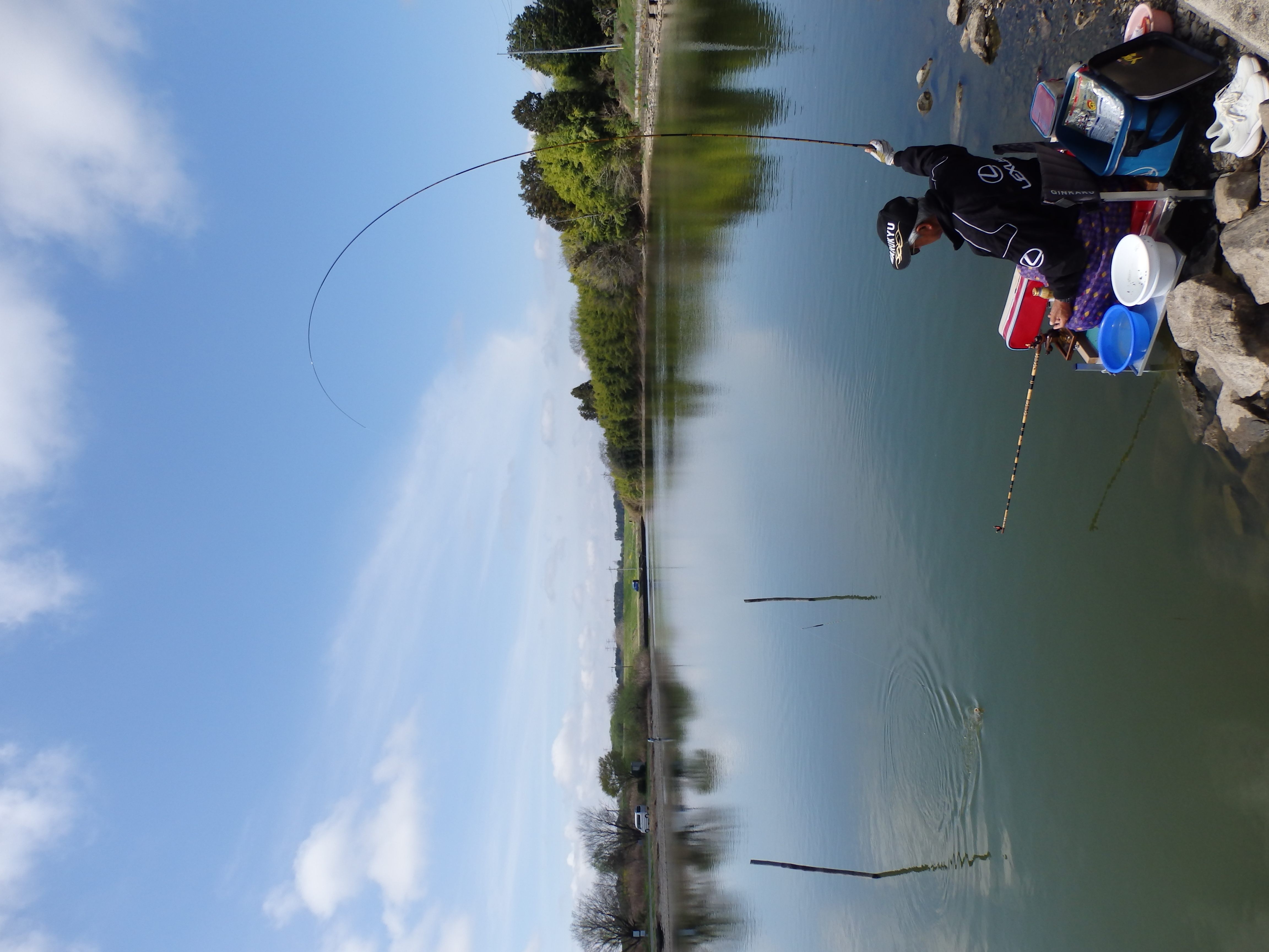 水位は約1m減水。魚は寄るがなかなか口を使わず口周りに掛かるスレが多かった。