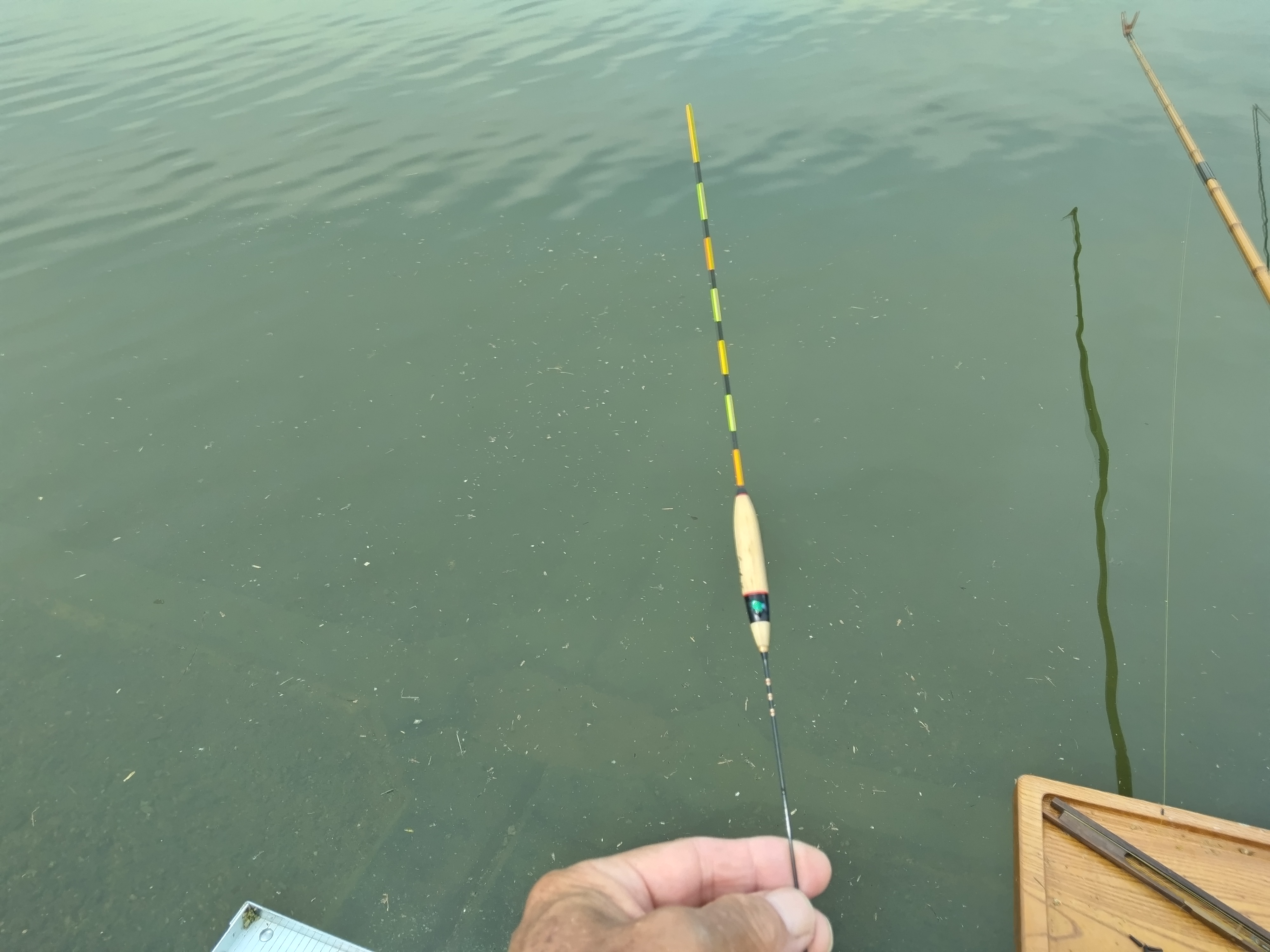 竿 16.5尺 道糸 2号 ハリス上 1号 - 10cm ハリス下 0.8号 - 50~60cm ハリ 上 10号 ハリ 下 5号 ウキ 伊豫田作 yuri-6(ボディ6cmPCムクトップ足長)