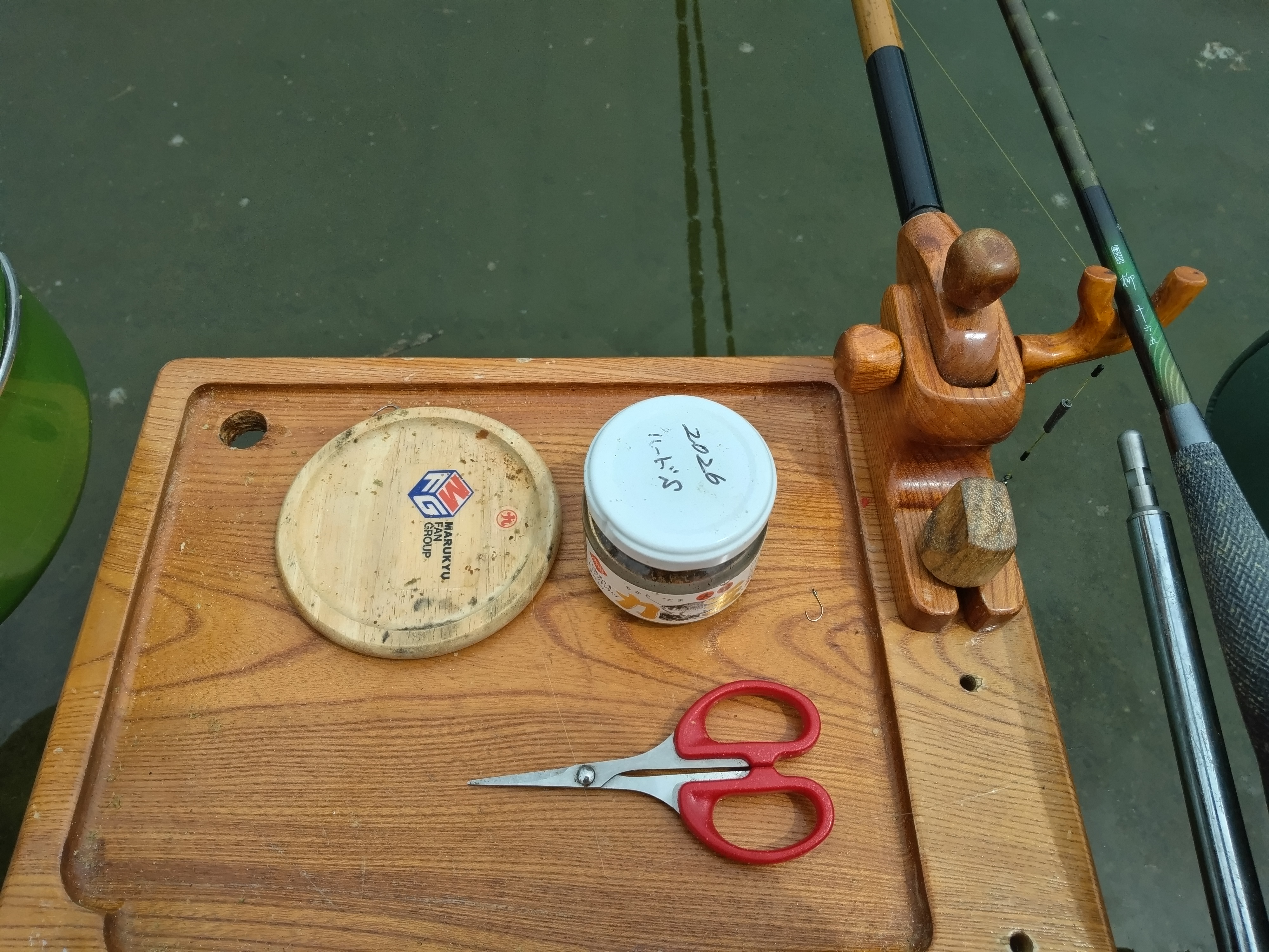 【バラケ】「粒戦」120cc+「粒戦細粒」30cc+水200cc(5分放置で吸水)+「パウダーベイトスーパーセット」600cc+「ふぶき」200cc