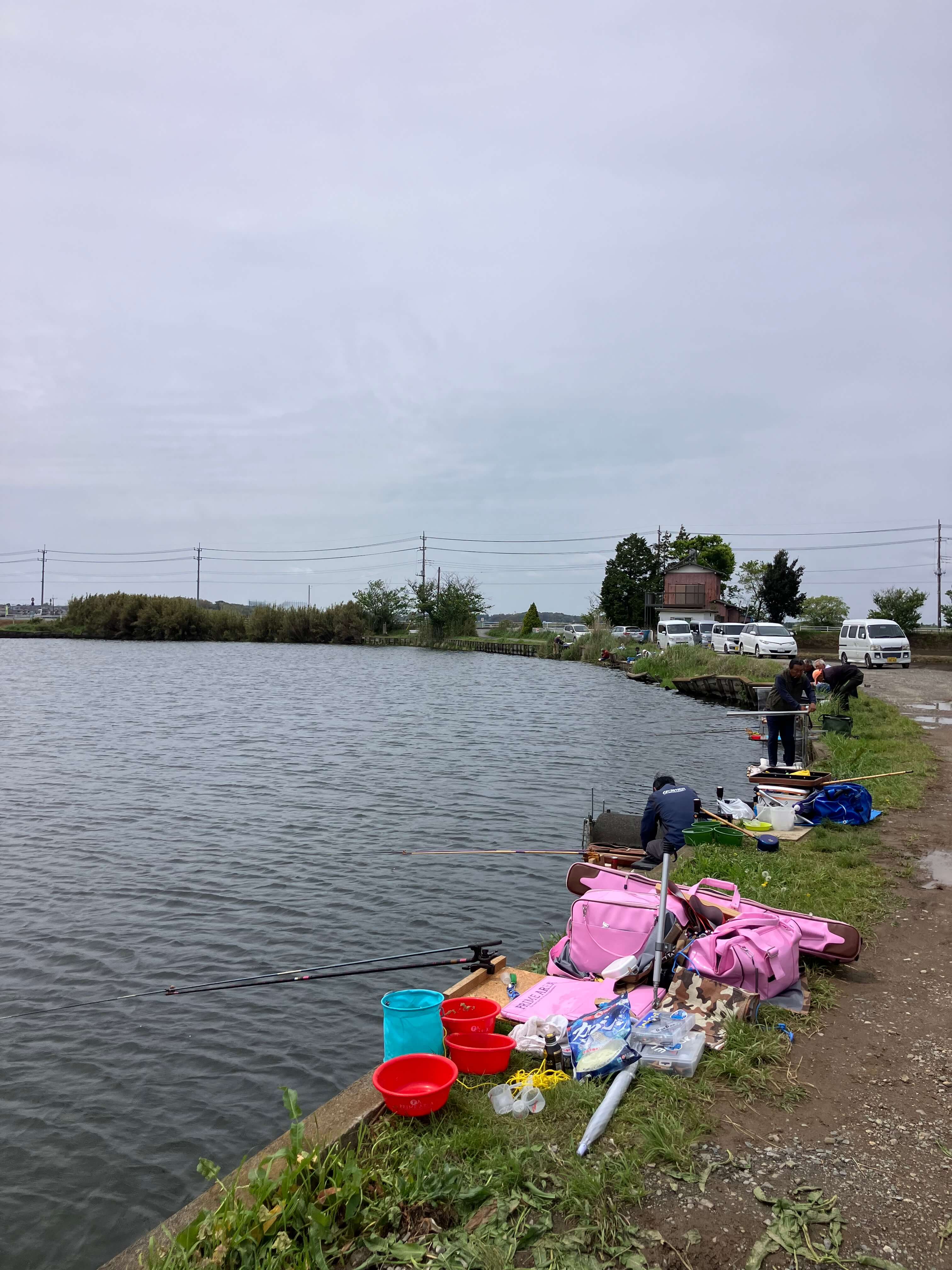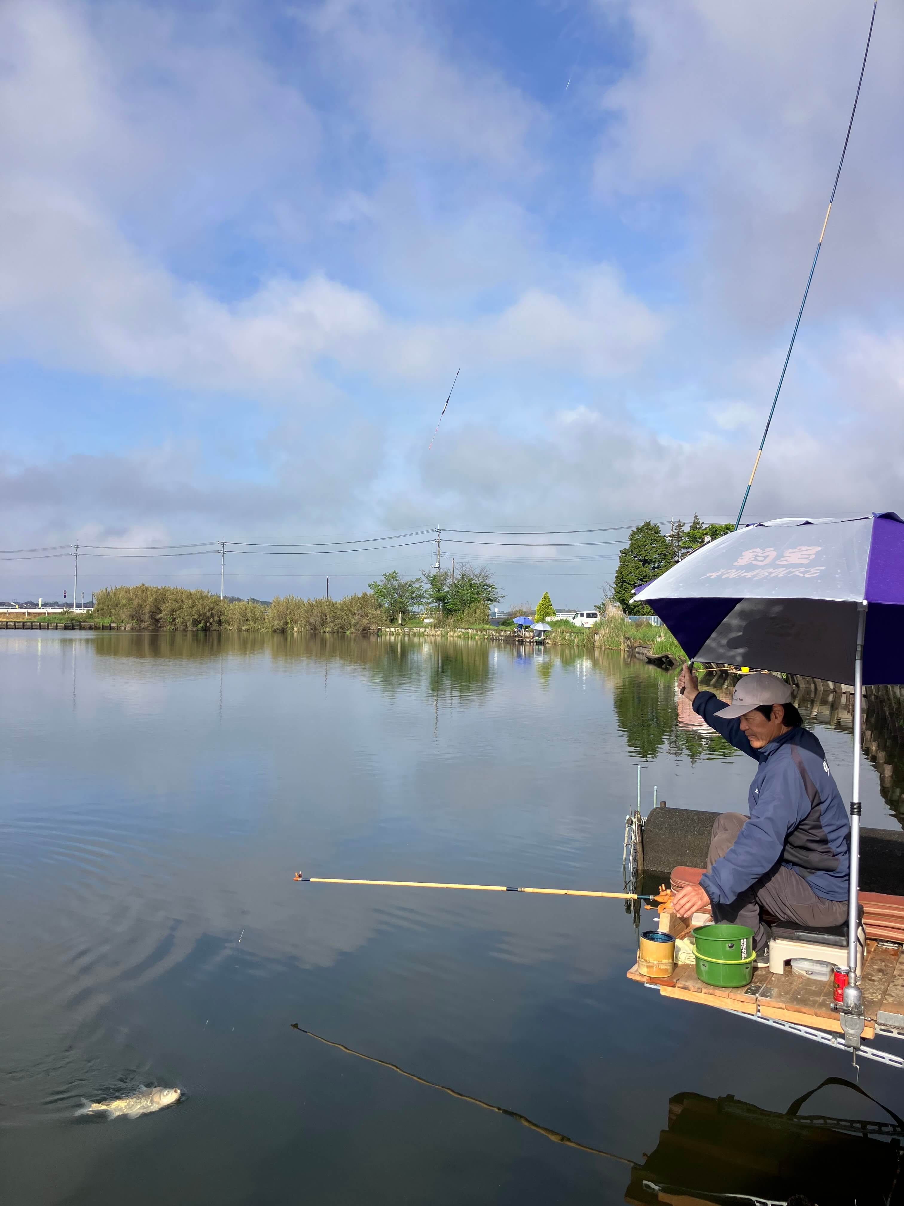 水が入ったことで普段は管理釣り場かと錯覚する程のモジリが出るが、殆ど魚の気配がなく嫌な予感。辺りが明るくなるのを待ち北側の旧トイレ寄りに並ぶ。この時点で釣り人は4人。打ち始めは「力玉ハ-ド(M)」のセットから入るがウキが動かず、3時間過ぎてもジャミのようなアタリが4回程あっただけ。