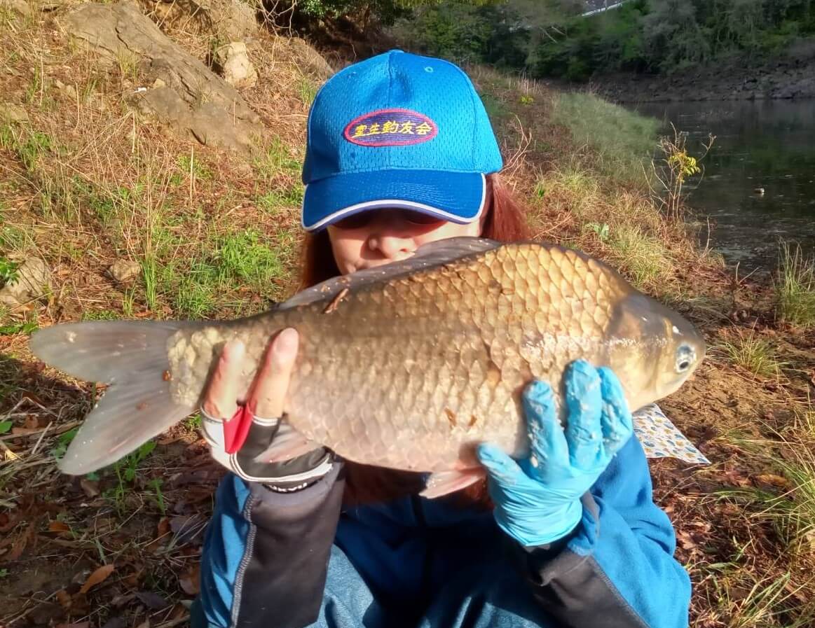 ダム全域でハタキが見られ、抱卵べらが水際をバシャバシャと水しぶきをかけられる程の中、5尺、7尺と探りながらエサを打ちました!大型のアオリに負け無いようにグルテンを振りかけ調整。しっかりとしたエサを心掛けました!