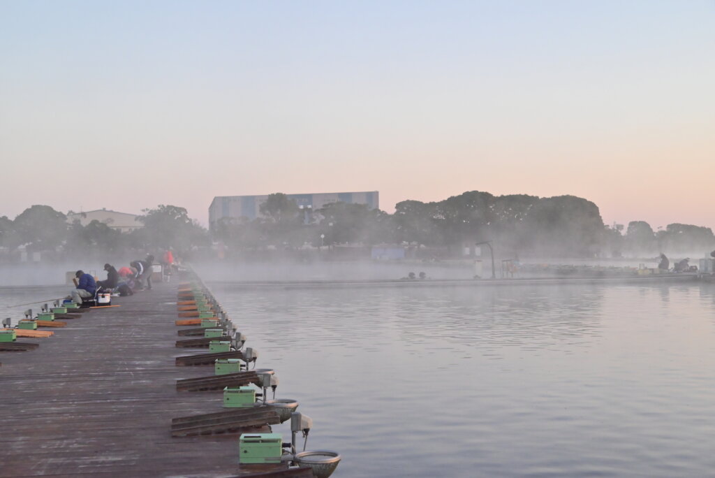 杉本先生:「おはよう〜!!一昨日に新べらが入って、一年に一回の“いいふな”に会えるチャンスなんだよ。新べら釣りは、多くのへら釣り師がこの時季盛り上がるお祭りみたいな感じ!」