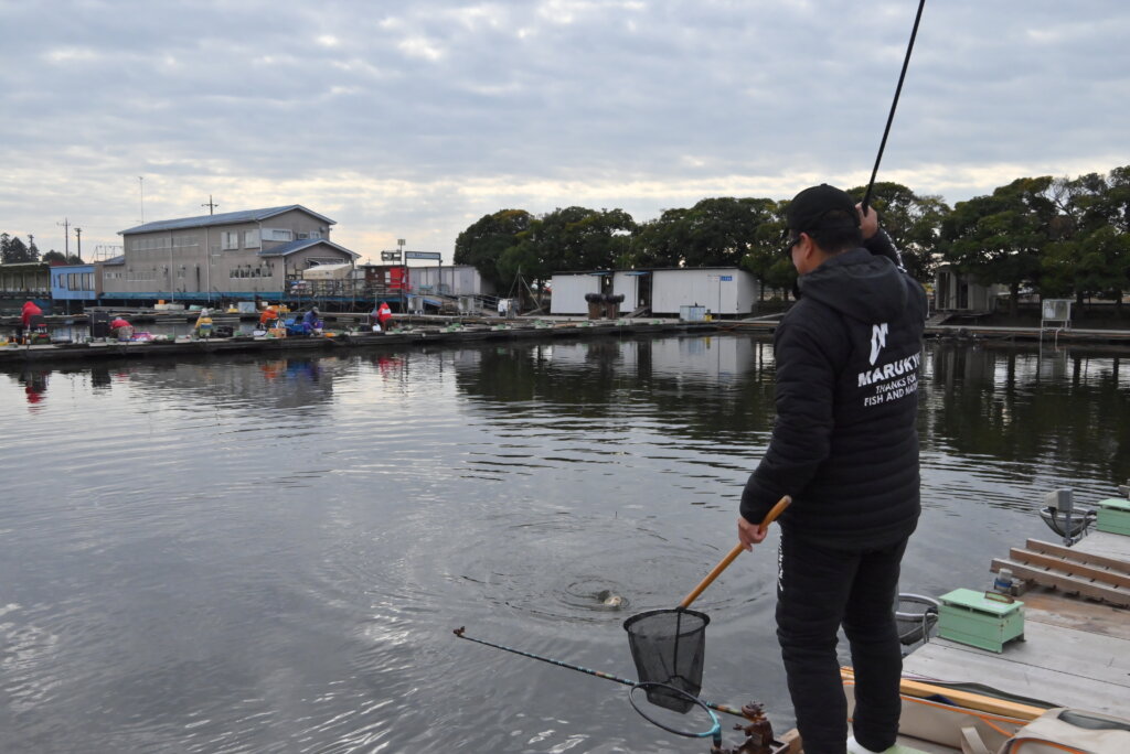 杉本先生:「補足情報として新べらは思ったより浅い養魚場でペレットで育てられている。急にこんな深いとこに放たれて、新しいエサを見ても食べるのが下手でエサを追っかけられない。だから変なカラツンもあって当たり前な感じかな。カラツンが多かったら、マッシュ少なめでグルテン繊維多めのブレンドにしてみるとか、そうやってバランスを考えていくといいよ。」